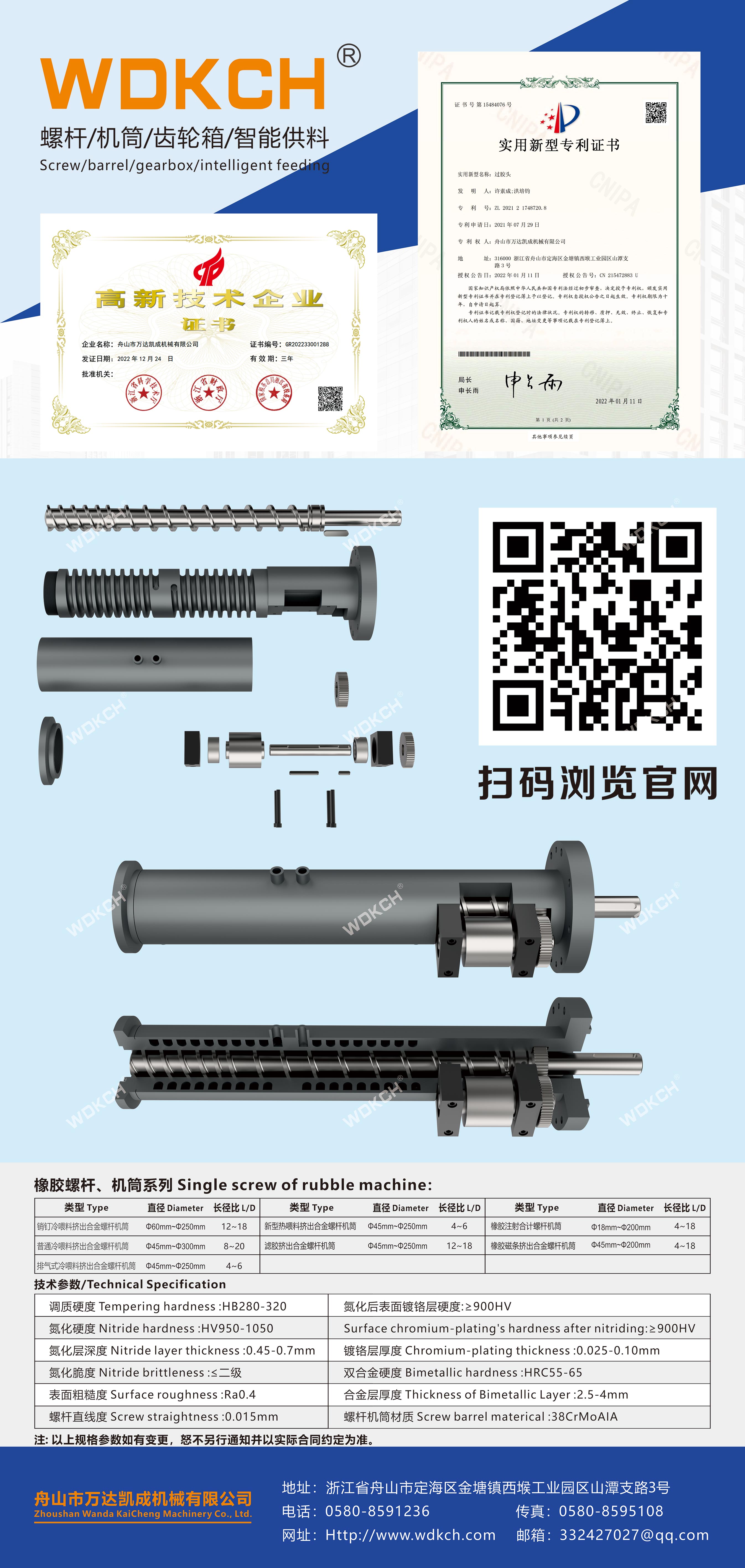 舟山市萬(wàn)達(dá)凱成機(jī)械有限公司專業(yè)制造機(jī)筒、螺桿、平行雙機(jī)筒螺桿、錐雙機(jī)筒螺桿、哥林柱、鋼司、齒輪減速箱、簡(jiǎn)易塑料成型機(jī)械。