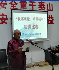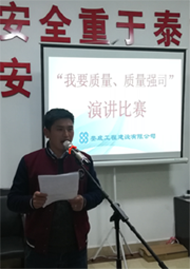 2017年11月17日晚,公司在機關(guān)辦公室大會議室舉辦了一場別開生面的“我要質(zhì)量,質(zhì)量強司”演講比賽。共有16位項目經(jīng)理上臺發(fā)表了主題演講。經(jīng)過評委現(xiàn)場打分評定,來自百弘學(xué)府城的項目經(jīng)理李朝陽榮獲一等獎;公司江龍灘基地項目經(jīng)理李紅暉、雙峰三塘鋪獨立工礦區(qū)現(xiàn)代產(chǎn)業(yè)園蜉化器項目項目經(jīng)理謝晃分獲二等獎。
