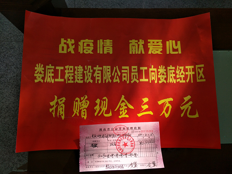 戰(zhàn)疫情,獻(xiàn)愛心!婁底工程建設(shè)有限公司員工積極響應(yīng)公司號召,踴躍奉獻(xiàn)愛心。2月18日,公司工會主席羅堅(jiān)代表公司將3萬元的員工捐款交給了婁底經(jīng)濟(jì)技術(shù)開發(fā)區(qū)社會事務(wù)局,以實(shí)際行動支持疫情防控工作。