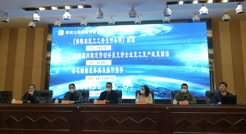 2020年4月2日19點(diǎn)30分,公司在9樓多功能會(huì)議廳舉辦“《保障農(nóng)民工工資支付條例》及相關(guān)法律法規(guī)”的培訓(xùn),培訓(xùn)邀請(qǐng)婁底市勞動(dòng)監(jiān)察局局長(zhǎng)曾憲君、副局長(zhǎng)楊明、監(jiān)察一科科長(zhǎng)宋耀平、監(jiān)察二科科長(zhǎng)王小橋等領(lǐng)導(dǎo)蒞臨現(xiàn)場(chǎng)指導(dǎo)和授課。公司總經(jīng)理胡勁、總工程師彭洪偉、副總經(jīng)理顏克靈、財(cái)務(wù)總監(jiān)戴文彬、機(jī)關(guān)單位各部室及所屬各項(xiàng)目部、楚源勞務(wù)公司等共計(jì)100余人參加此次培訓(xùn)。